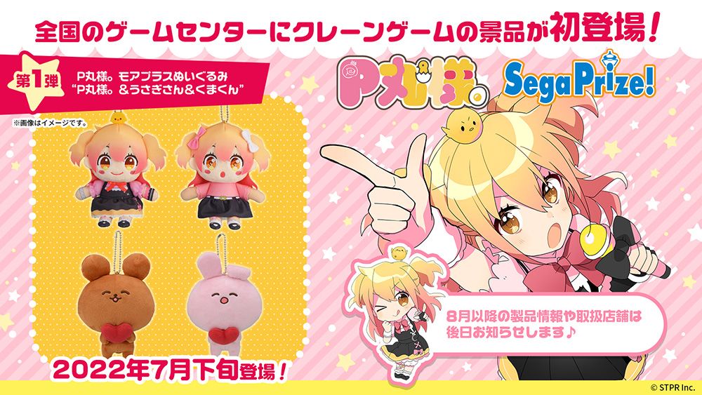 7月下旬、全国のゲームセンターのUFOキャッチャーにP丸様。のプライズが初登場します!7月から12月にかけて、P丸様。・くまくん・うさぎさんのぬいぐるみやマスコット等が続々登場予定です。お楽しみに!