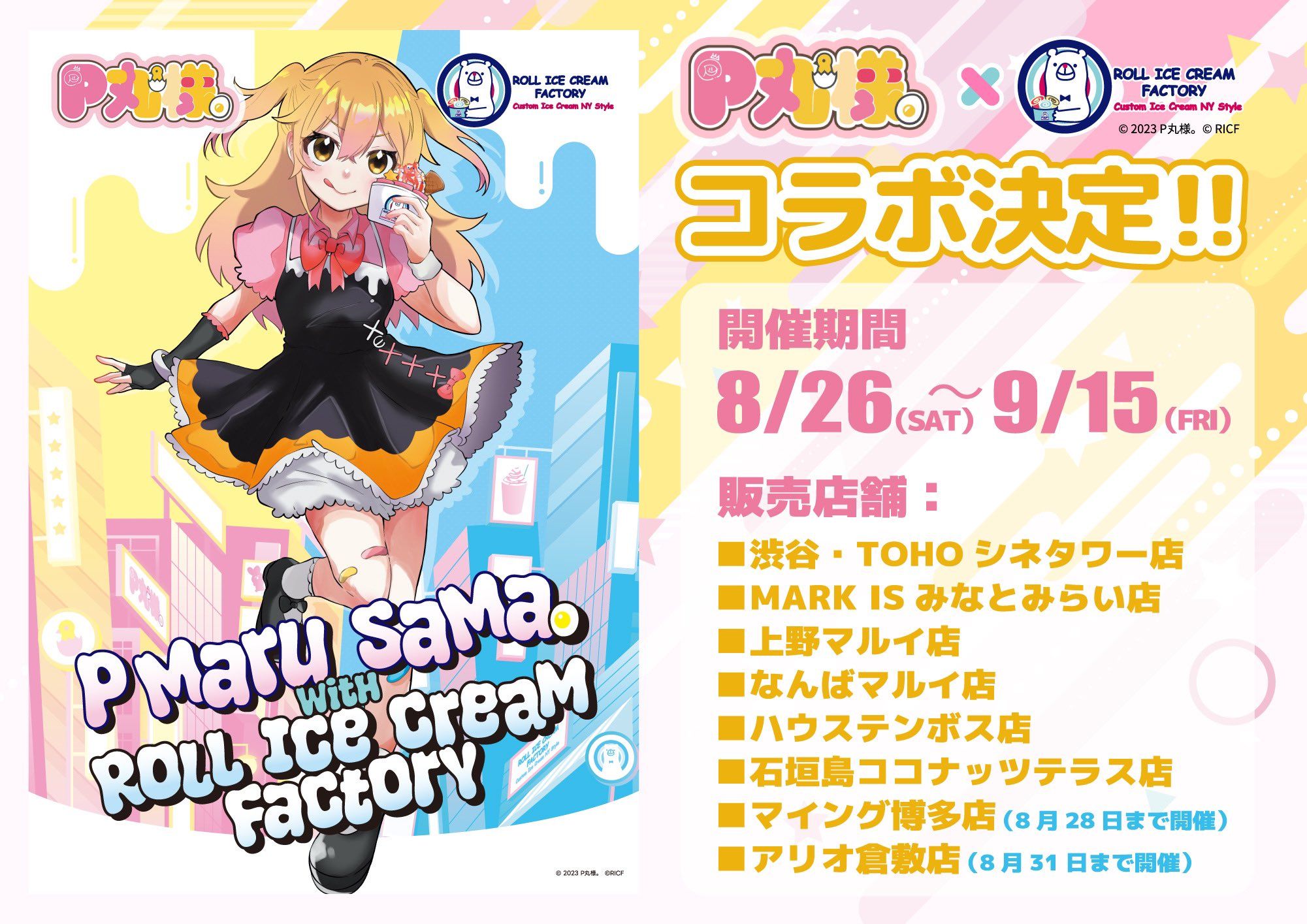 詳細は特設サイトをご覧ください。P丸様。×ロールアイスクリームファクトリー